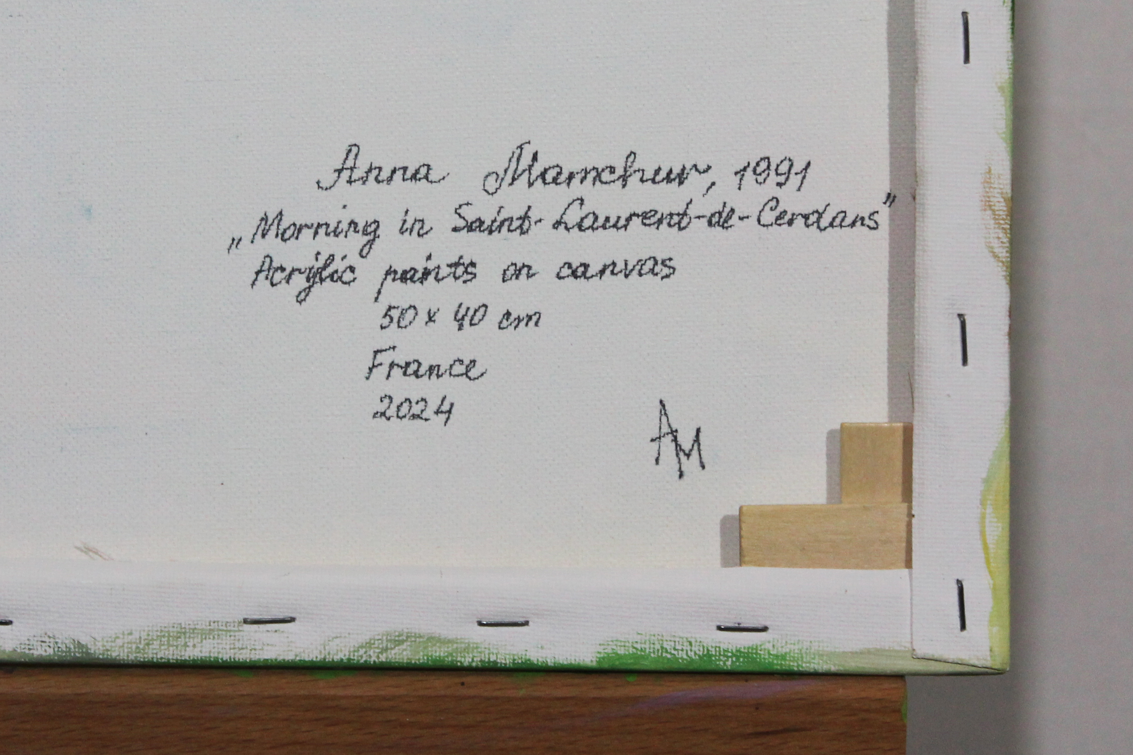 У цій роботі зображено ранковий стан села Сан-Лоран-де-Сердан, розташованого в гірській частині півдня Франції. Композиція побудована спокійно й врівноважено, без акценту на події, що дозволяє зосередитися на самому просторі та архітектурному ритмі місця.