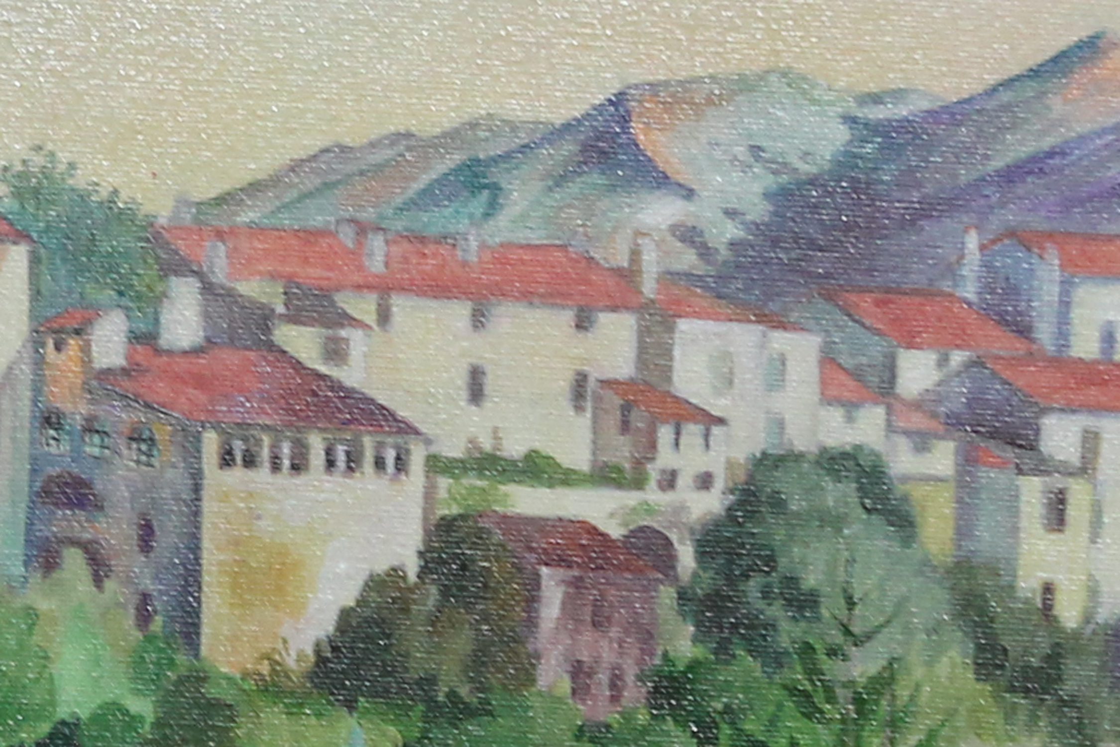 У цій роботі зображено ранковий стан села Сан-Лоран-де-Сердан, розташованого в гірській частині півдня Франції. Композиція побудована спокійно й врівноважено, без акценту на події, що дозволяє зосередитися на самому просторі та архітектурному ритмі місця.