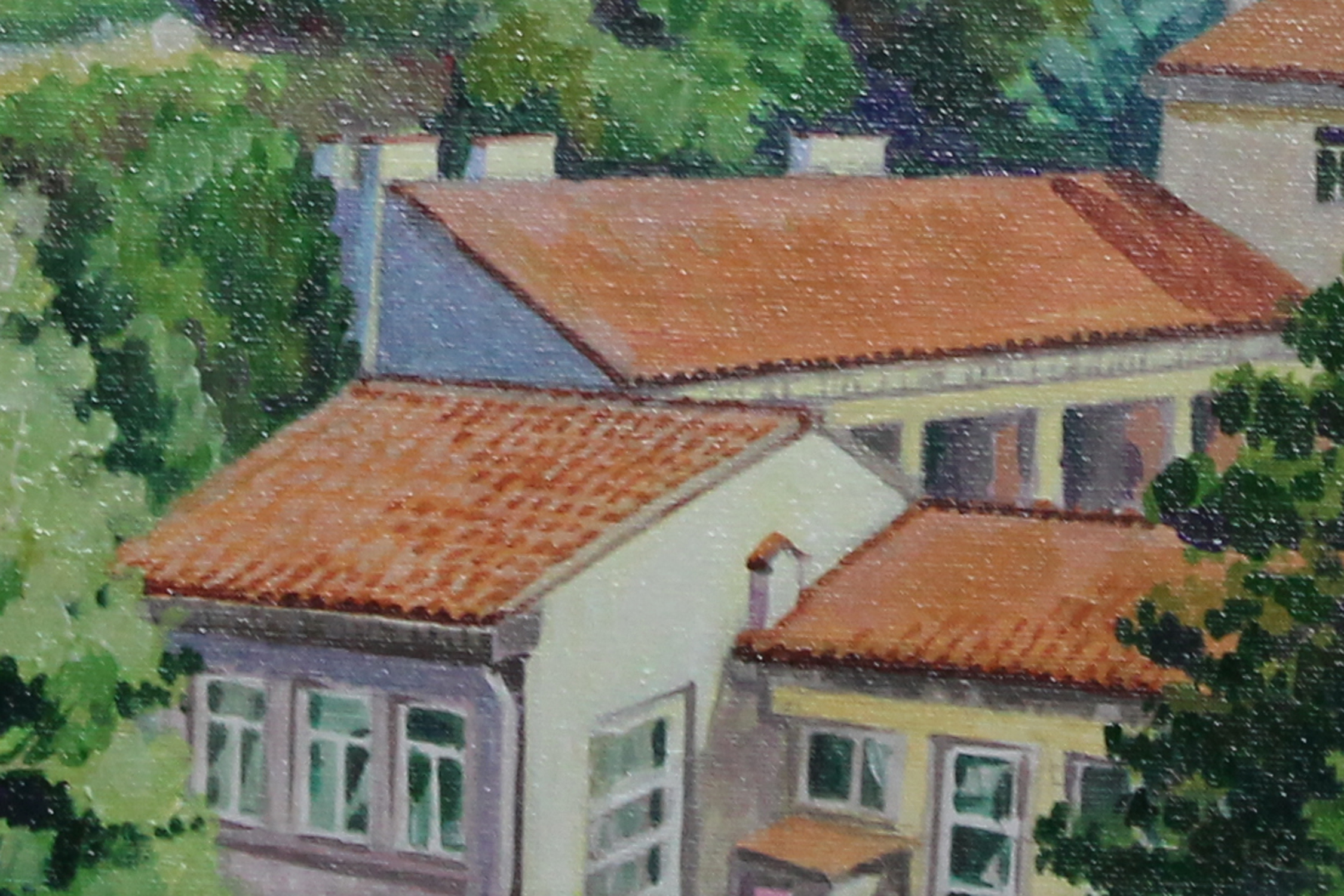 Живописна мова картини ґрунтується на м’якому ранковому світлі, яке поступово огортає будівлі й підкреслює їхню форму. Колористичне рішення стримане, з теплими нюансами, що створюють відчуття тиші та природної гармонії.
